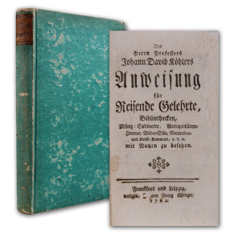 Anweisung für Reisende Gelehrte, Bibliothecken, Münz-Cabinette, Antiquitäten-Zimmer, Bilder-Säle, Naturalien- und Kunst-Kammern, u.d.m. mit Nutzen zu besehen.