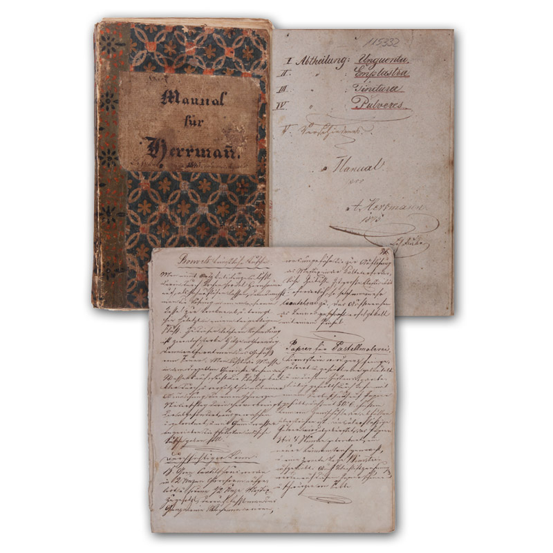 Ohne Ort, 1845-49. (16,5 x 10 cm). (4) 121 (richtig 112) (3) S. Pappband der Zeit mit Deckelschild und Buntpapierbezug.