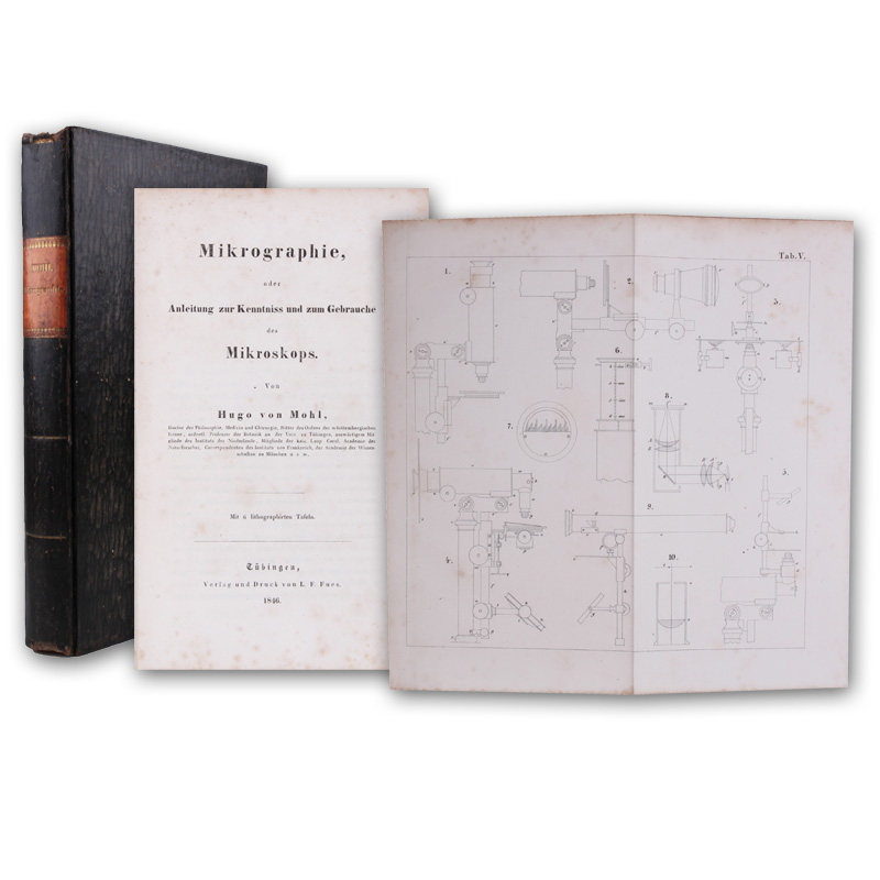 Tübingen, Fues, 1846. (22,5 x 14 cm). X, 351 S. Mit 6 gefalteten lithographierten Tafeln. Pappband der Zeit.