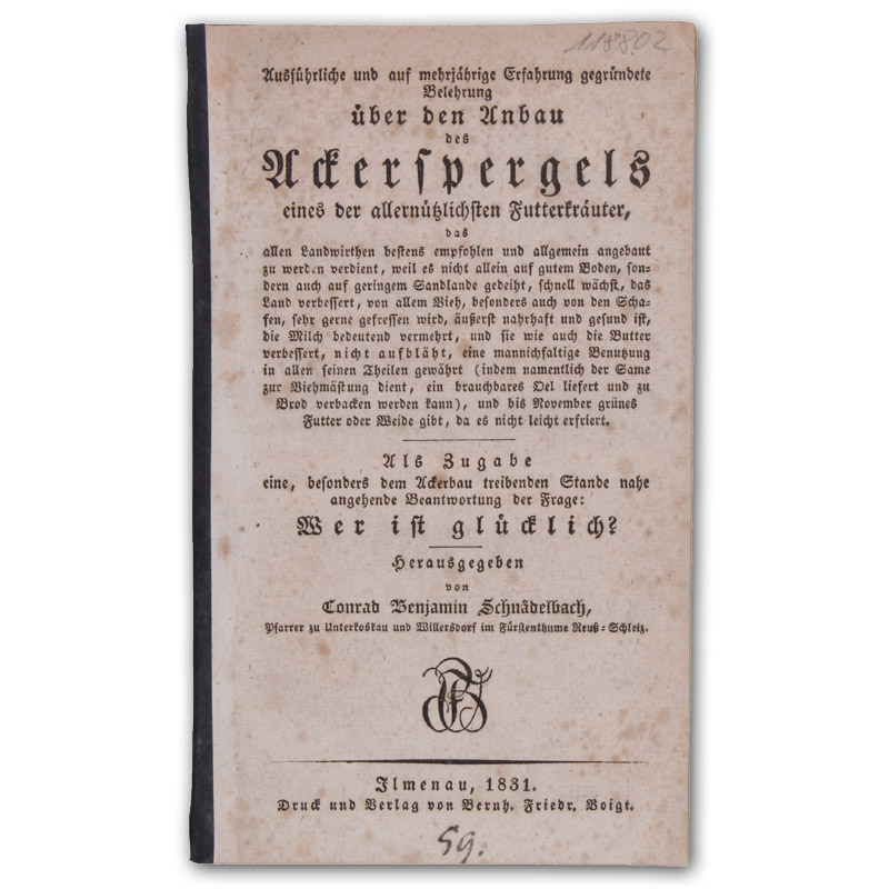 Ausführliche und auf mehrjährige Erfahrung gegründete Belehrung über den Anbau des Ackerspergels, eines der allernützlichsten Futterkräuter.