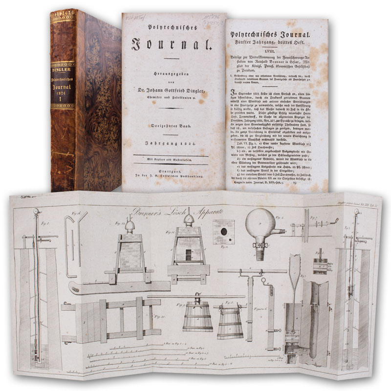 Stuttgart, Cotta, 1824. (22 x 13 cm). XIV, 534 S. Mit 10 gefalteten Kupfertafeln. Halblederband der Zeit.