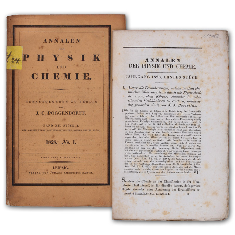 Ueber die Veränderungen, welche in dem chemischen Mineralsysteme durch die Eigenschaft der isomorphen Körper, einander in unbestimmten Verhältnissen zu ersetzen, nothwendig geworden sind. SS. 1-39. In: Annalen der Physik und Chemie. Hrsg. J. C. Poggendorff. Band 12, No. 1.