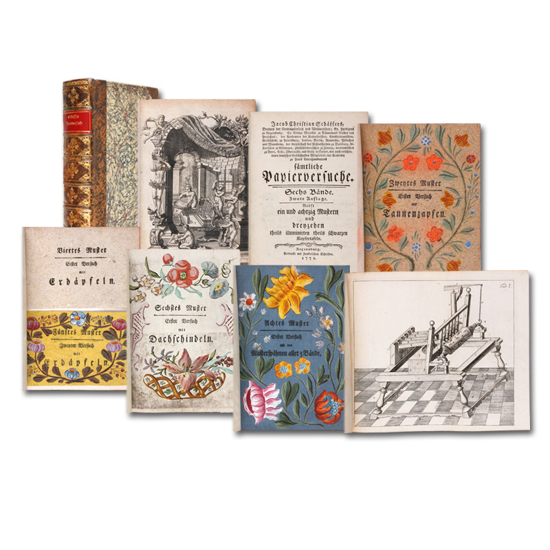 Versuche und Muster ohne alle Lumpen oder doch mit einem geringen Zusatze derselben Papier zu machen. 2 Teile in 1 Band.