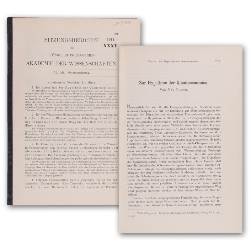 Zur Hypothese der Quantenemission. SS. 723-731. In: Sitzungsberichte der Preussischen Akademie der Wissenschaften. Heft 35.