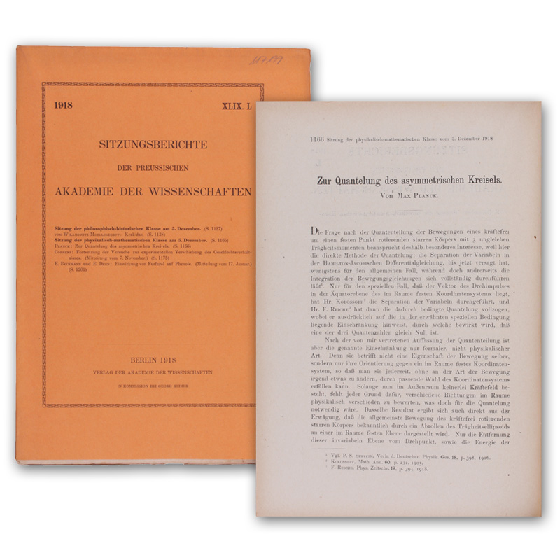 Zur Quantelung des asymmetrischen Kreisels. SS. 1166-1174. In: Sitzungsberichte der Preussischen Akademie der Wissenschaften. Heft 49/50.