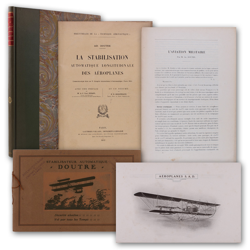 Sammelband mit 2 Werken und 2 beiliegenden Prospekten zur Längsstabilisierung von Flugzeugen.