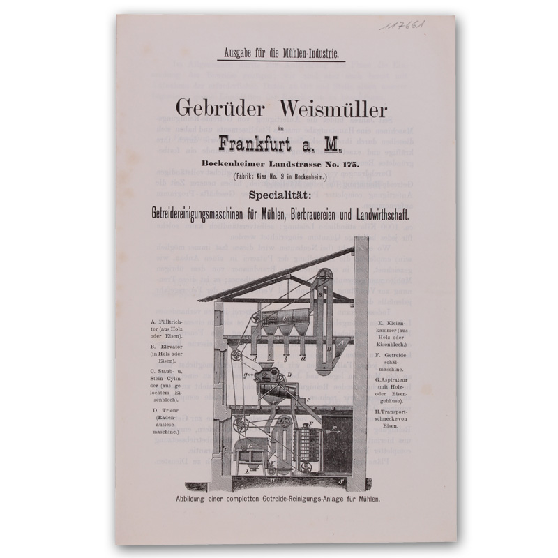 Specialität: Getreidereinigungsmaschinen für Mühlen, Bierbrauereien und Landwirthschaft.